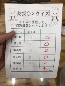 久世施設長は4問正解し、防災グッズ(長期常温保存可能なレトルトカレー)を獲得しました✨