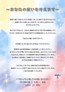 あなたの「願い」を職員が一緒に考え、実現へ向けてお手伝いする取り組みです。ご希望のある方は、こちらのリンクから、もしくは事務所に設置している専用用紙にご記入の上、お気軽にご相談ください。